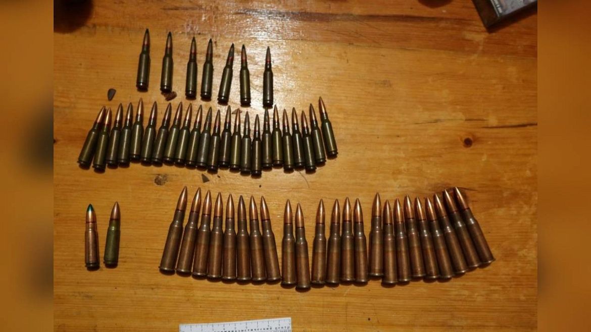 Прибыв по указанному адресу, сотрудники полиции обнаружили и изъяли пакет с находящимися внутри 55 патронами разного калибра и учебной гранатой. Согласно проведённой экспертизе, найденные патроны, ряд из которых был произведён в 1908 и 1943 годах, пригодны к стрельбе из нарезного боевого огнестрельного оружия.