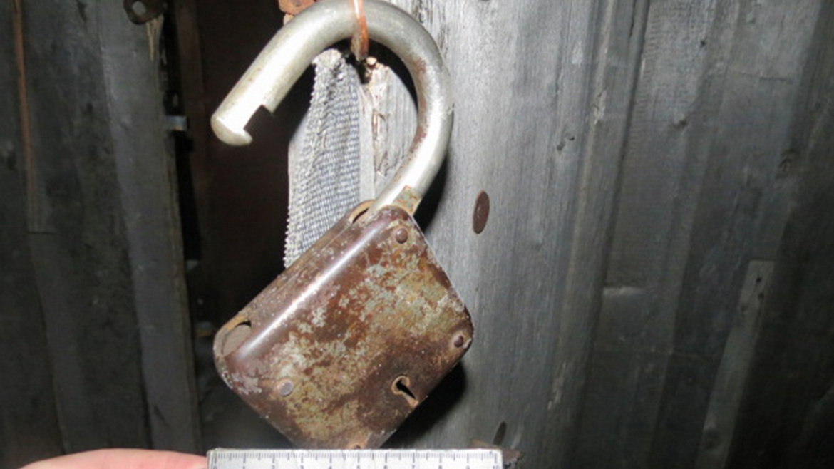 Полицейские, выехавшие по указанному в сообщении адресу, осмотрели место происшествия, обнаружили и изъяли два навесных замка с повреждениями и полотенце со следами вещества бурого цвета.