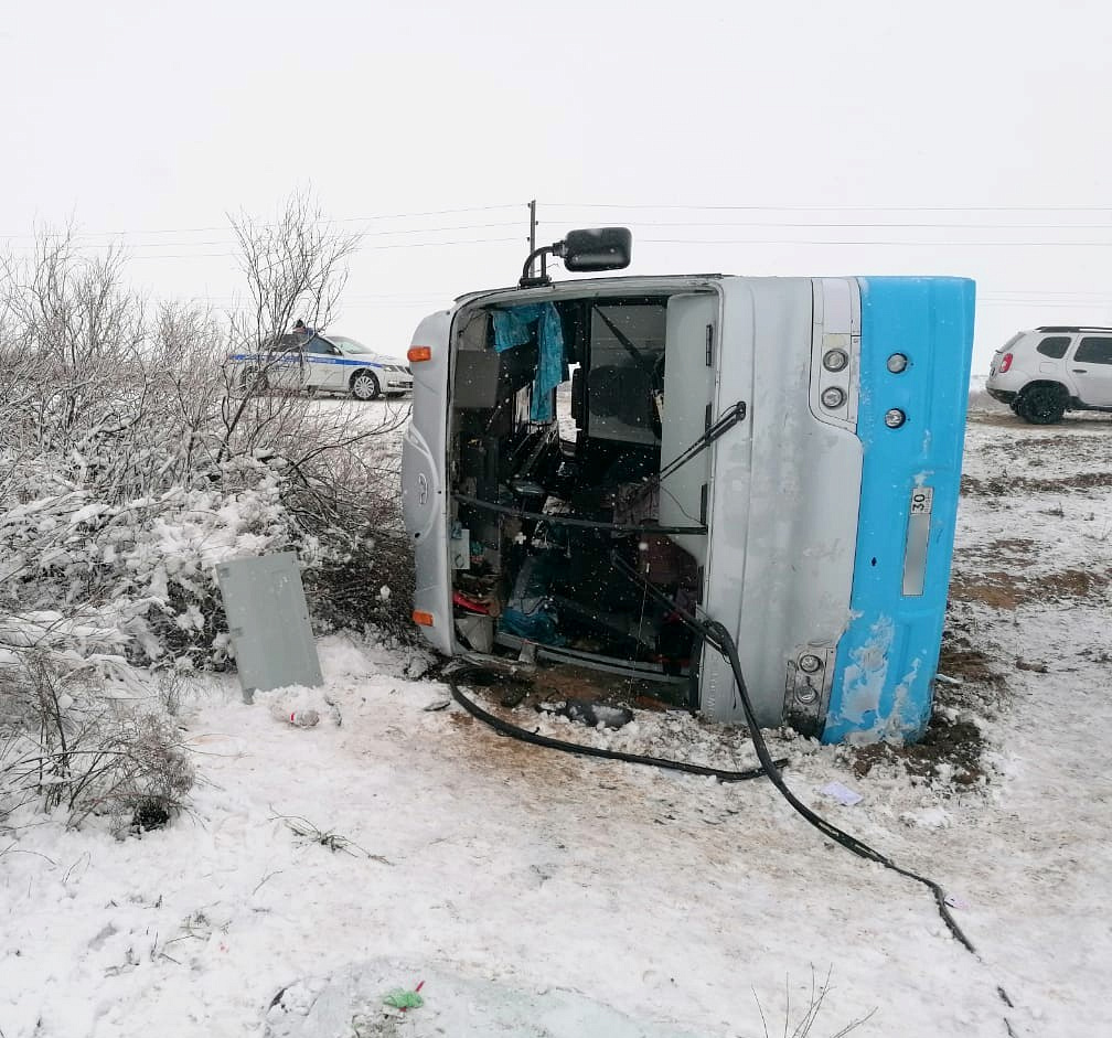 Сегодня примерно в 6 часов 50 минут на 350-м километре автодороги «Волгоград - Астрахань» 57-летний водитель автобуса «Daewoo-BH117», следуя из областного центра в с. Заволжское, во время обгона грузовика не справился с управлением и допустил опрокидывание в кювет.