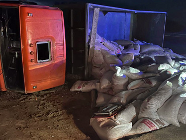 Злоумышленник совершал опасные манёвры, создавая аварийные ситуации. После повреждения колёс грузовик съехал на обочину и перевернулся набок. Угонщик задержан.