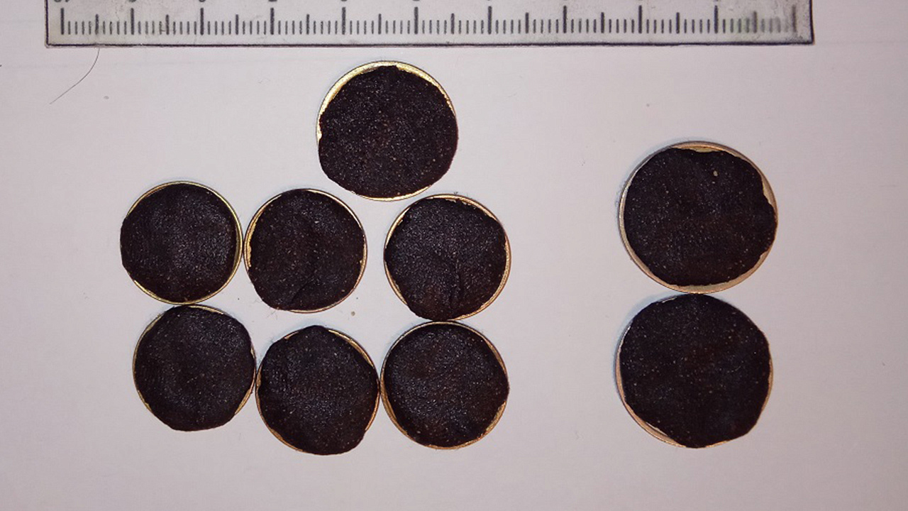 Впоследствии при проведении оперативно-розыскных мероприятий полицейские установили, что в доме ранее судимой за имущественные преступления и причинение тяжкого вреда здоровью гражданки хранится 9 монет различного номинала с веществом тёмного цвета, а также полимерный контейнер с неизвестным содержимым.
