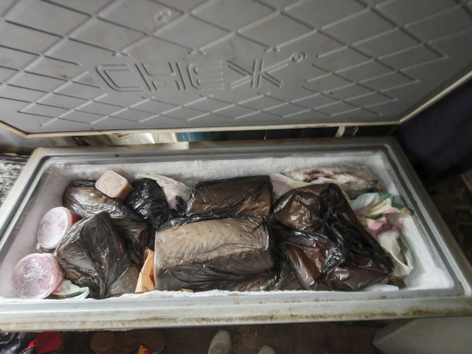 Во втором случае у 64-летнего жителя села Вознесенское в ходе обыска по месту жительства полицейские обнаружили в морозильном ларе 27 замороженных фрагментов осетра и калуги общим весом 150 кг. Со слов мужчины, мешки с деликатесом он нашёл на берегу реки Амур в районе села Вознесенское и хранил с целью личного употребления.