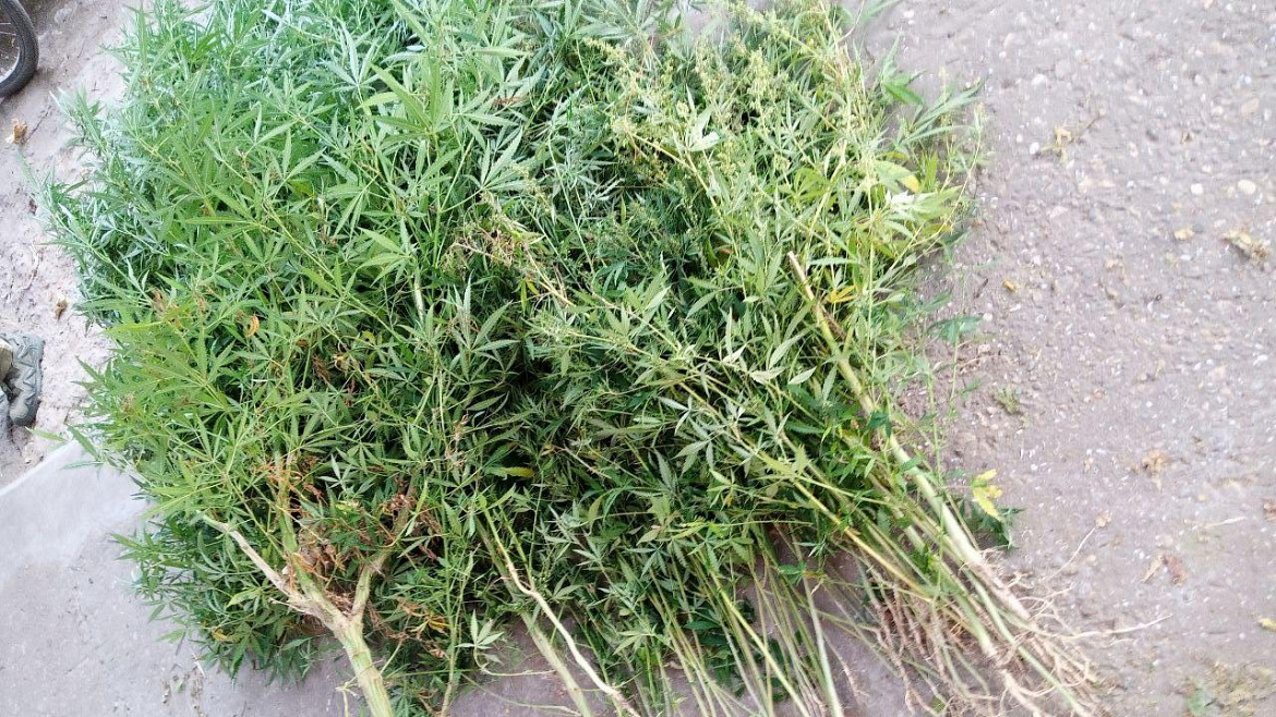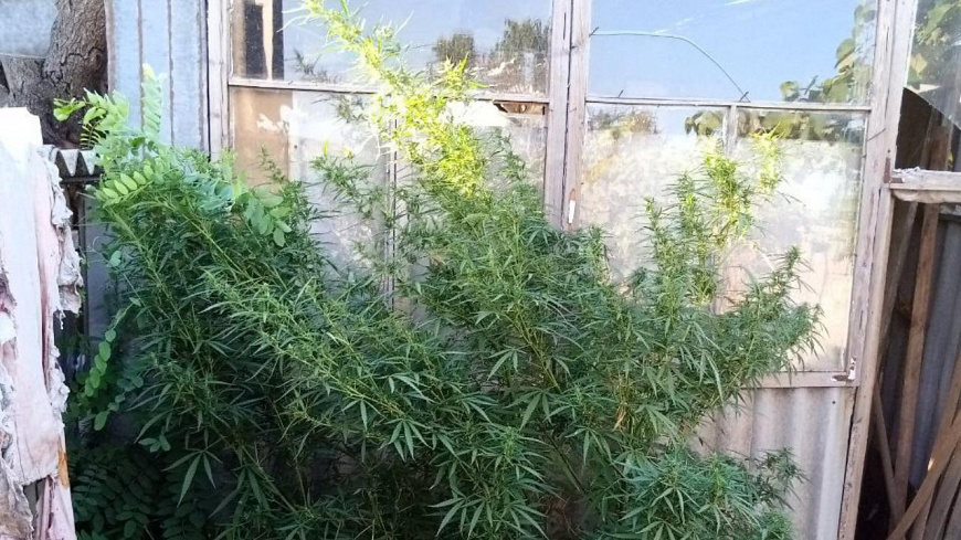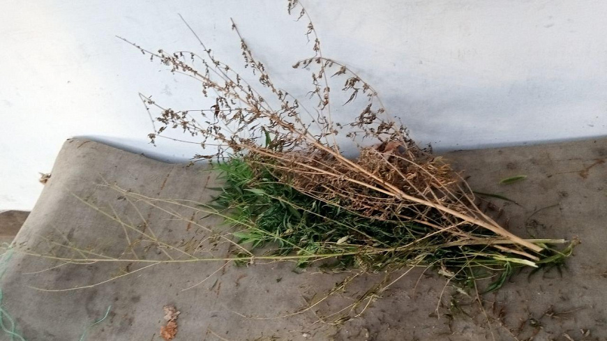 При осмотре территории домовладения мужчины оперативники обнаружили и изъяли 68 кустов растений семейства коноплёвых с признаками культивации, а также свёрток с измельчённым веществом растительного происхождения с характерным запахом марихуаны массой около 100 граммов.