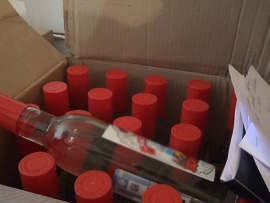 В результате обыска двух гаражей, используемых подозреваемым, полицейские обнаружили и изъяли около 1850 немаркированных бутылок, оклеенных этикетками различных производителей водки, но наполненных сомнительным алкоголем крепостью 32-34 градуса, а также более 55 тысяч пачек сигарет без акцизов. Общая стоимость изъятой нелегальной продукции превышает 7,5 млн рублей.