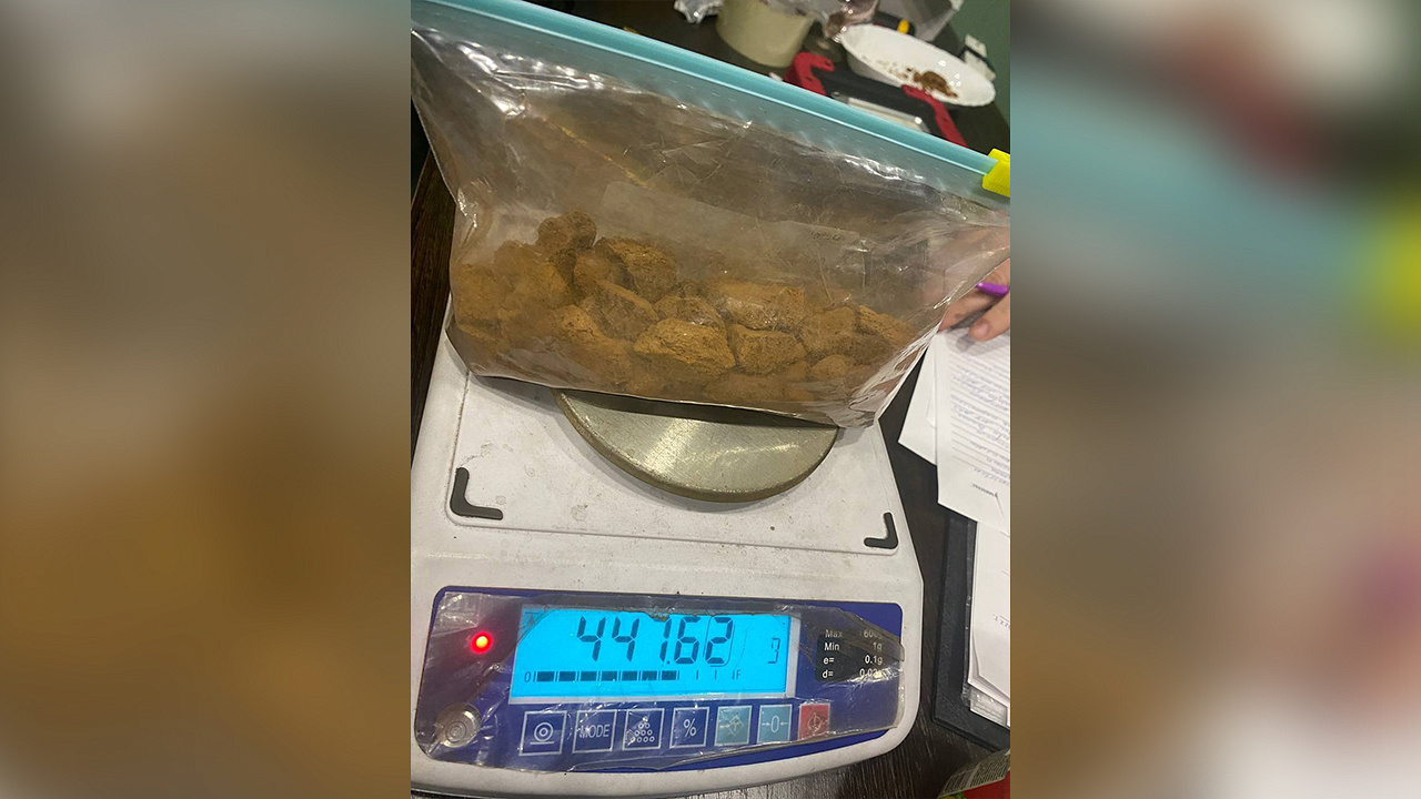 По месту жительства мужчины полицейские обнаружили и изъяли слитки на основе золота с примесью железа и хрома общим весом 1,3 кг, которые были получены при кустарной очистке и переплавке природного (россыпного) золота. Также оперативники изъяли химически осаждённое золото в виде песка жёлтого цвета с примесями железа, меди и свинца, полученного путём кустарной переработки руды коренного месторождения золота. Стоимость изъятого благородного металла превысила 4 млн рублей.