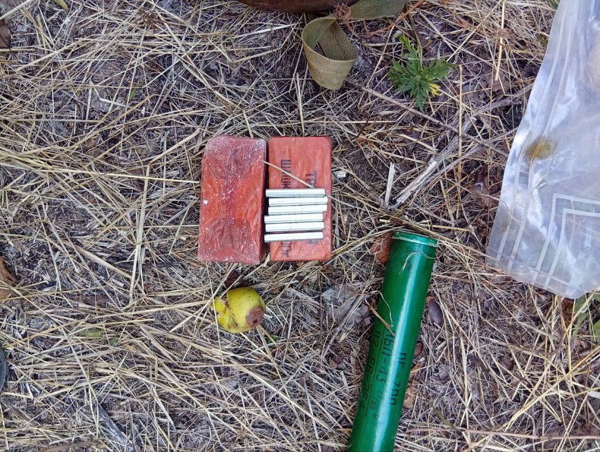 В общей сложности правоохранители изъяли 1212 патронов различного калибра, две тротиловые шашки весом по 400 граммов каждая, электродетонаторы в количестве шести штук, одну противотанковую мину, два снаряда от ручного противотанкового гранатомёта и один пороховой заряд к выстрелу от РПГ.