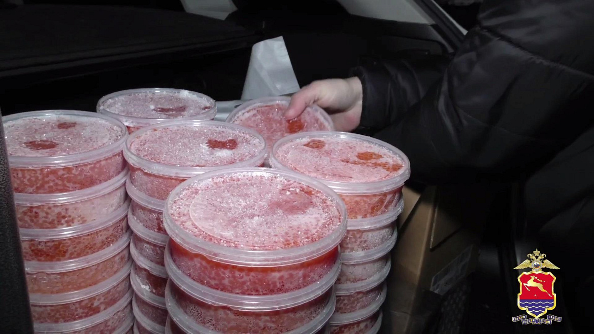Полицейские изъяли из автомобиля гражданки почти 35 килограммов готовой к продаже лососёвой икры общей стоимостью свыше 240 тысяч рублей.