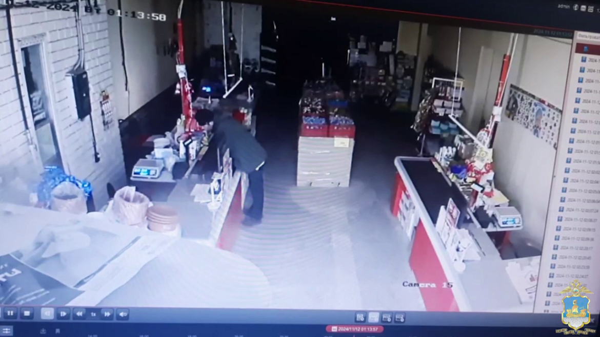 Злоумышленник пришёл к торговой точке, разбил кирпичом окно, забрался внутрь, собирал в пакет консервы, замороженное мясо, а также сидр, вино и водку, но вынести не успел. Он услышал шум подъехавшего авто, понял, что это охрана, и спрятался на верхней полке стеллажа.