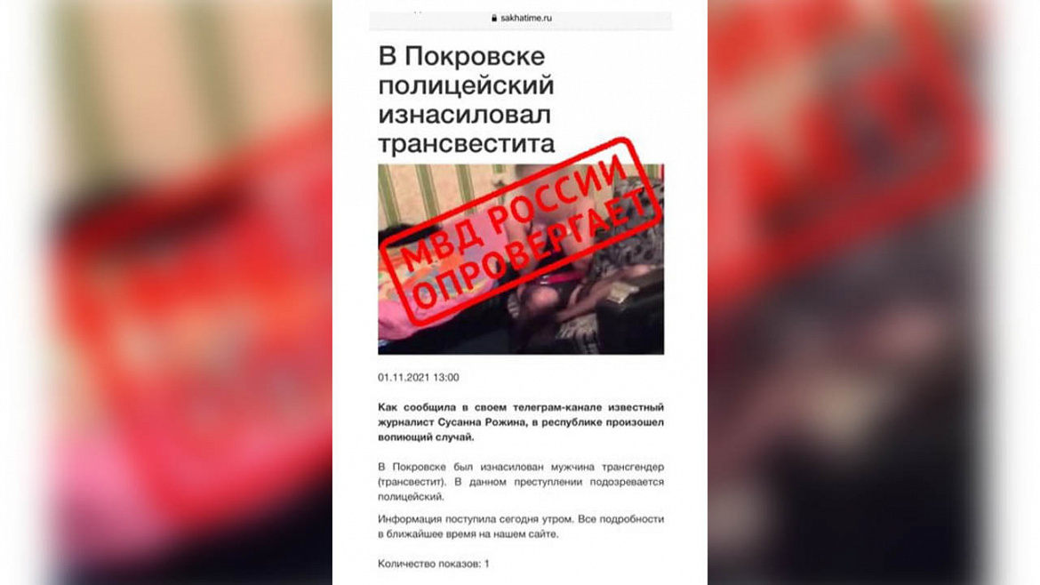 1 ноября на сайте информационного агентства «SakhaTime» опубликована статья с заголовком: «В Покровске полицейский изнасиловал трансвестита».