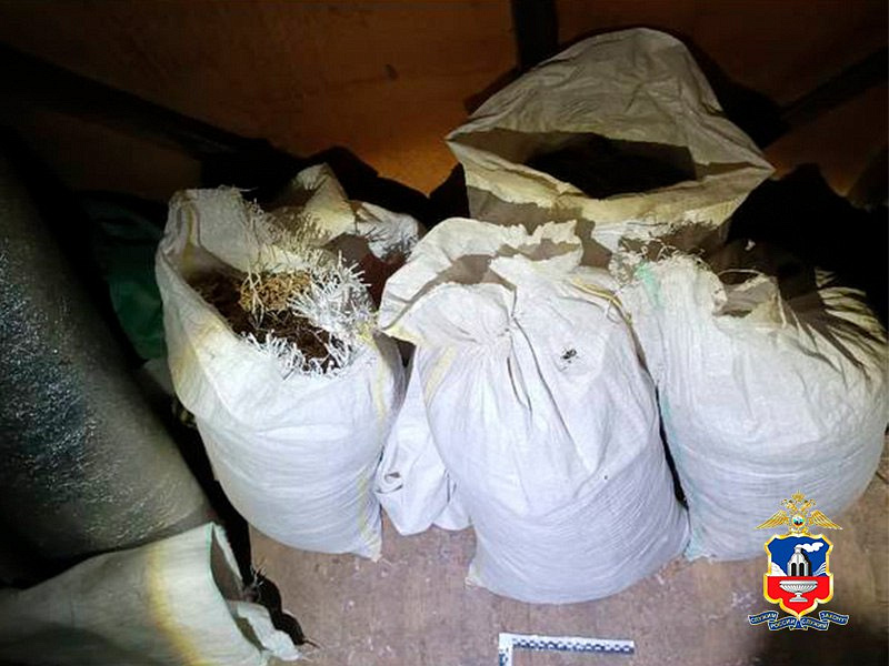 При осмотре территории домовладения злоумышленника в одной из построек полицейские обнаружили шесть мешков с сухой растительной массой со специфическим запахом.
