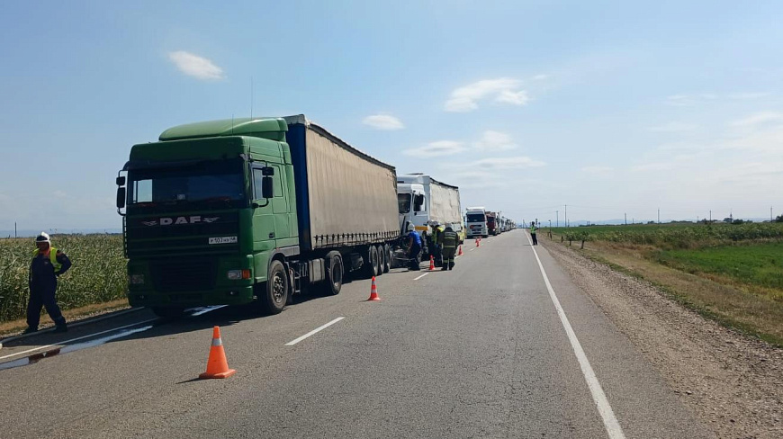 Сегодня в Крымском районе Краснодарского края около 15.00 часов произошло дорожно-транспортное происшествие с участием двух грузовых транспортных средств и одной легковой машины.