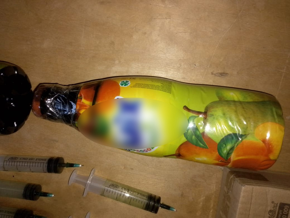 Обследовав место проживания наркоторговца, стражи правопорядка изъяли почти 4 килограмма гашишного масла, которое хранилось в четырёх полимерных бутылках. Данная партия запрещённого вещества сдержит более 4 тысяч разовых доз, а её стоимость по ценам чёрного рынка может достигать 17 миллионов рублей.