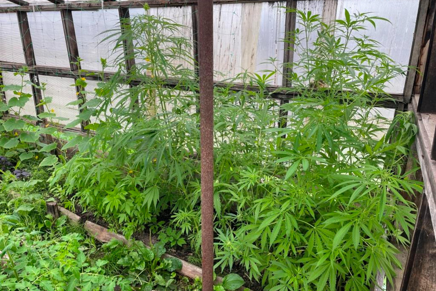 На участке жителя посёлка Белые Берега под Брянском полиция обнаружила теплицу со 150 кустами конопли