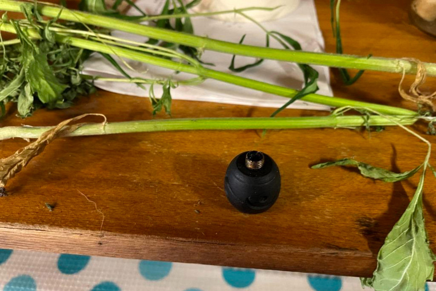 В ходе обследования домовладения подозреваемого сотрудники полиции изъяли всю «дурман-траву», а также прибор для измерения влажности почвы, сито с измельчёнными частями предположительно каннабиса и мундштук.