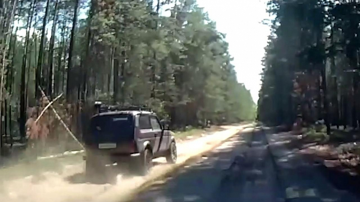 Полицейские начали преследование внедорожника. Нарушитель, уходя от погони, вилял на проезжей части из стороны в сторону, чуть не совершив столкновение с автомобилем, движущимся во встречном направлении.