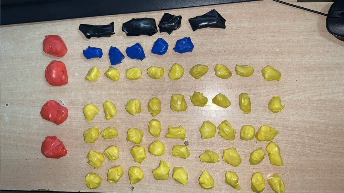 В её рюкзаке оперативники обнаружили и изъяли 58 свёртков с неизвестным содержимым, замотанные изолентой, а также стеклянную банку с растительным веществом светло-коричневого цвета. По результатам выборочного исследования установлено, что в одном из свёртков находился наркотик альфа-PVP массой более 9 граммов.