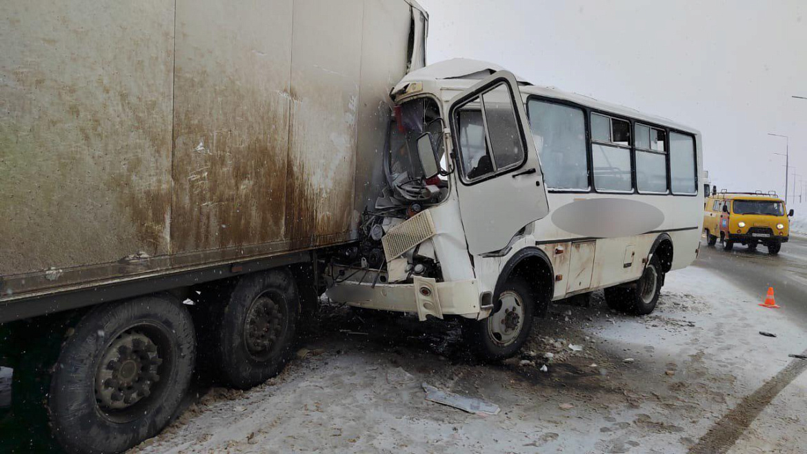 По предварительным данным, водитель вахтового автобуса ПАЗ, в салоне которого находилось 10 человек, не выбрал безопасную скорость движения и врезался в стоявший на обочине седельный тягач Mercedes-Benz с прицепом. Мужчина, находившийся за рулём грузовика, остановился, чтобы протереть лобовое стекло.