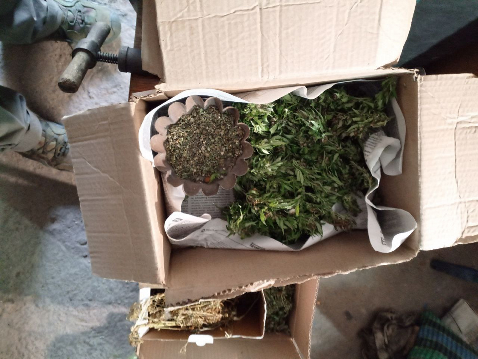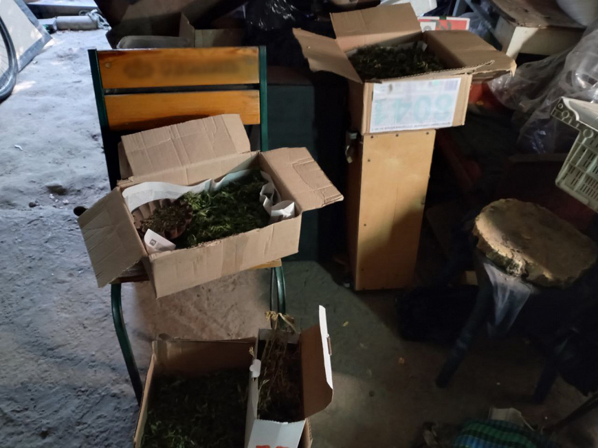 Так, на территории его частного домовладения в гараже полицейские обнаружили 4 картонные коробки, а также 1 металлическую и 1 пластиковую ёмкости, наполненные веществом растительного происхождения с характерным запахом марихуаны общей массой около трёх килограммов. При этом зелье находилось на различных стадиях сушки.