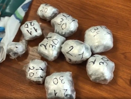 В результате проведения досмотра машины под обшивкой коробки передач со стороны переднего пассажирского сидения было обнаружено 13 свёртков, обёрнутых синей изолентой, и пять свёртков под обшивкой со стороны бардачка, а также при личном досмотре водителя в левом кармане брюк обнаружен один полимерный пакет. Согласно экспертному исследованию, все изъятые вещества являются наркотическими средствами – мефедроном и альфа-пирролидиновалерофеноном. Общая масса запрещённых веществ составила около 885 граммов.