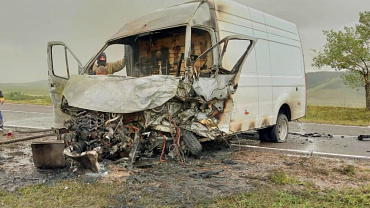 Предварительно установлено, водитель легковушки выехал на встречку и совершил лобовое столкновение с машиной ГАЗель, отчего малотоннажный автомобиль загорелся.