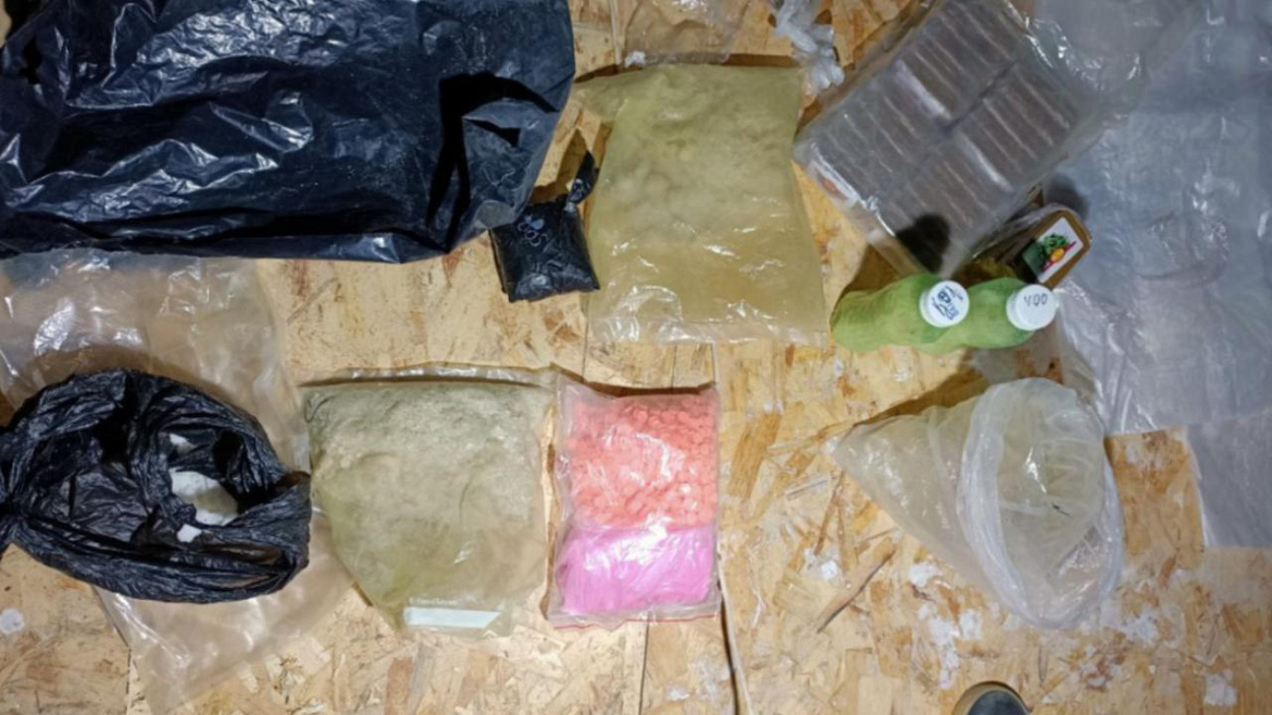 Полицейские обыскали недостроенный дом на улице Полевой, в котором злоумышленник проживал и проводил ремонтные работы. Там обнаружили 24 свертка коричневого цвета, 11 пластиковых бутылок и 7 пакетов с кристаллическими веществами, более тысячи таблеток оранжевого и розового цвета, 24 бутылки с остатками жидкости, а также вакууматор, весы, изоленту и скотч.