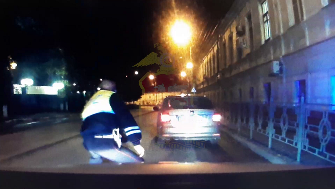 Вскоре в районе улицы Генерала Кулакова нарушитель не справился с управлением и выехал на обочину дороги, после чего вместе с молодой пассажиркой попытался убежать, но был задержан сотрудниками полиции.