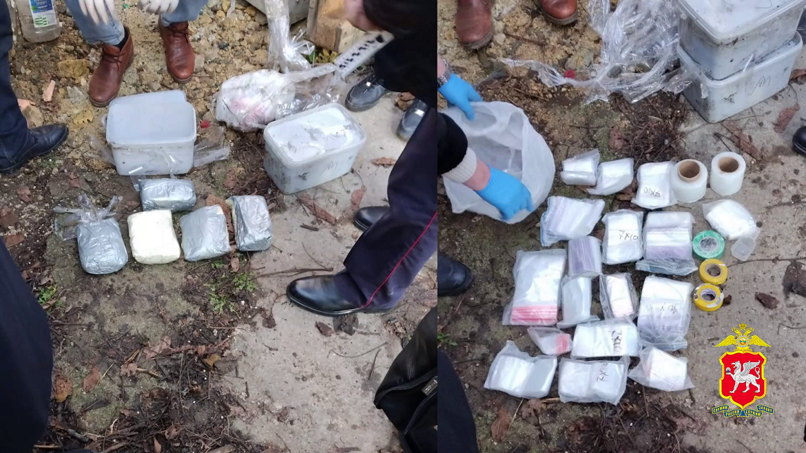 В ходе обследования земельного участка мужчины полицейские обнаружили закопанные им брикеты с мефедроном и так называемой «солью» общей массой около 3,5 кг. Ещё несколько свёртков с аналогичным содержимым, но общей массой порядка 4 кг, а также упаковочный материал и весы сыщики нашли в частном доме злоумышленника. Они были спрятаны в коробках.