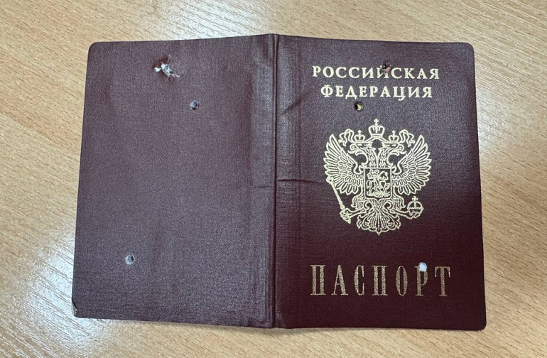 В мае текущего года военнослужащий попал под обстрел, и осколок боеприпаса попал ему в грудь, но последствия оказались нефатальными – основной удар принял на себя паспорт.
