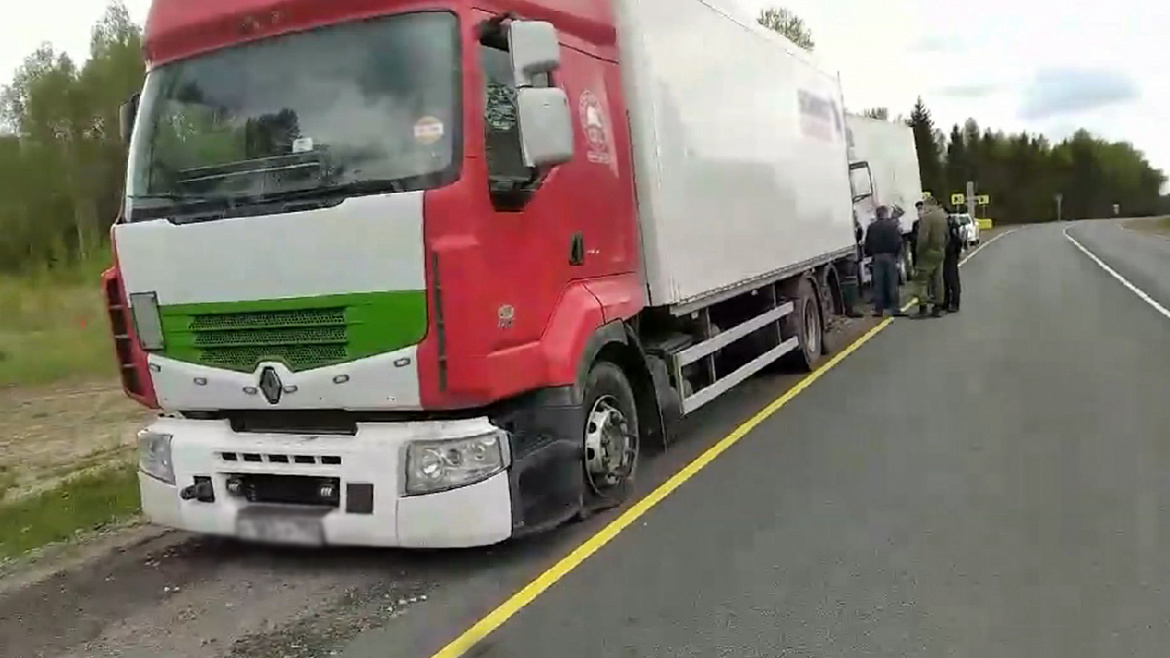 В Смоленской области в районе населенного пункта Понятовка Шумячского района сотрудниками областного пограничного управления ФСБ России были выявлены три большегрузных автомобиля, двигавшихся на высокой скорости в направлении города Рославль. Совместно с полицейскими ОБ ДПС по обслуживанию автодорог федерального значения ГИБДД УМВД России по Смоленской области были предприняты меры для остановки большегрузов. Однако водители проигнорировали законные требования полицейских и, ускоряясь, продолжили движение. Стражи правопорядка организовали преследование.