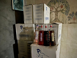 В ходе обысков в арендованных гаражных боксах в п. Горный, в г. Ачинске, а также в придорожном кафе в д. Большой Кемчуг полицейскими обнаружено и изъято более 4 тысяч литров спиртного, из которого 3360 литров – это спирт, а 750 литров – горячительные напитки. Общая стоимость изъятого превысила 2,4 миллиона рублей.