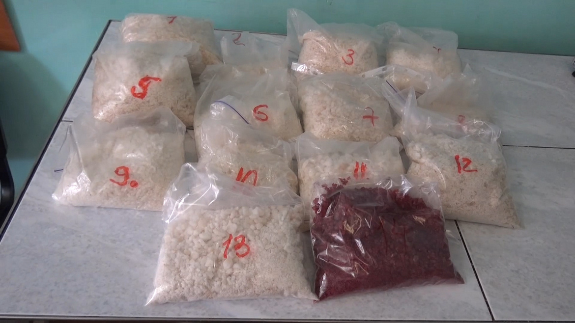 На месте происшествия полицейскими обнаружено и изъято 14 свёртков с кристаллическим веществом общим весом более 8 кг. Согласно заключению эксперта ЭКЦ ГУ МВД России по Московской области, содержимое двух свёртков общим весом около 2 кг содержит в своём составе наркотическое средство - метилэфедрон. Остальная часть изъятого находится на экспертизе.