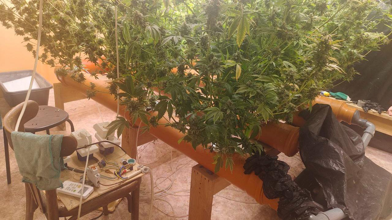 При проведении обыска в квартире задержанного полицейскими обнаружена специально оборудованная комната, в которой мужчина незаконно выращивал «дурман-траву» и высушивал её. В помещении найдено 12 кустов конопли, а также уже приготовленные для употребления части запрещённых растений. При перерасчете на сухое вещество общая масса изъятого наркотика составила более 1 килограмма, что является крупным размером. Со слов задержанного, он растил каннабис для себя, без цели сбыта.