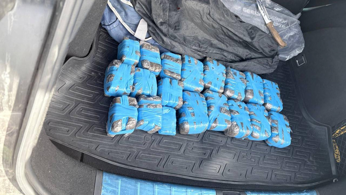 При досмотре иномарки нарушителя оперативники обнаружили под обшивкой багажного отделения перемотанные изолентой 74 брикета с гашишем общей массой более семи килограммов.
