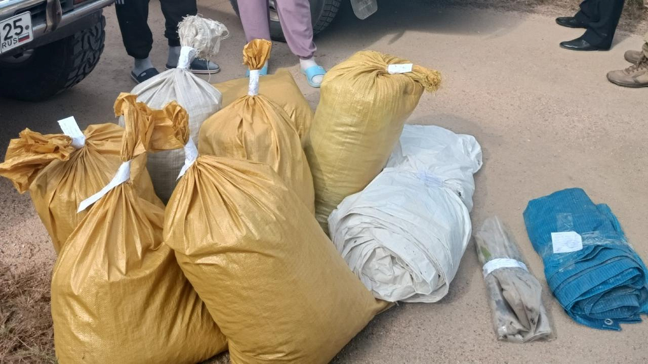 В ходе оперативно-розыскных мероприятий было установлено, что в лесном массиве недалеко от села мужчина собирал маньчжурскую коноплю и сушил её на тентах под лучами солнца.