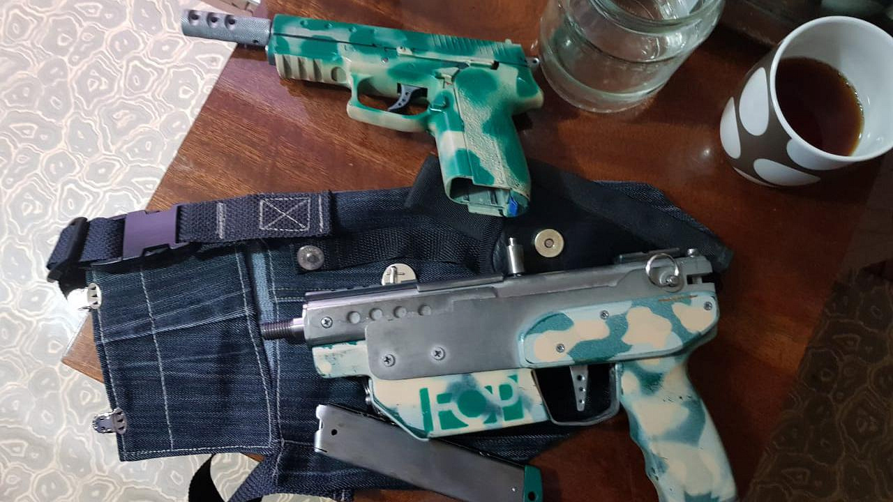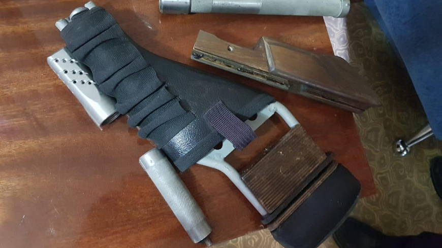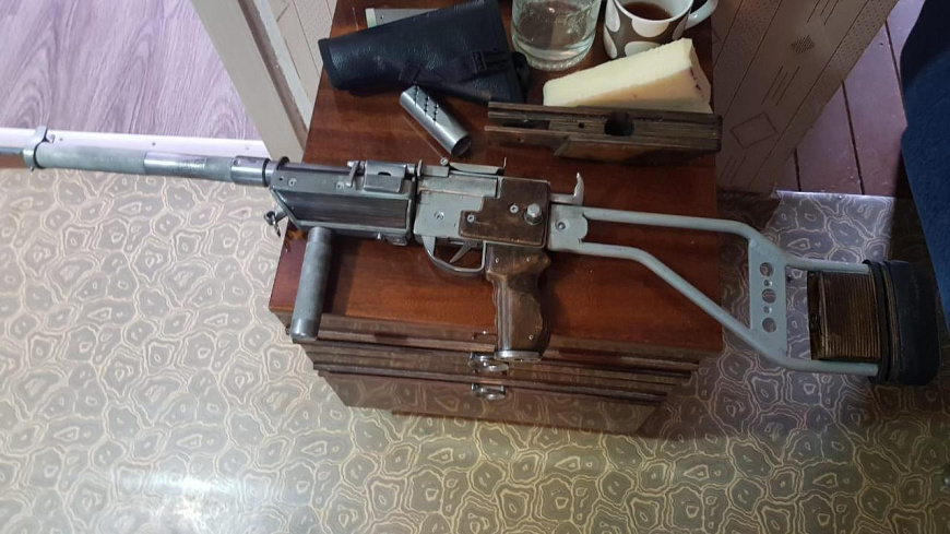 Из квартиры подозреваемого оперативниками уголовного розыска были изъяты предметы, похожие по внешним признакам на винтовку, 2 пистолета без маркировочных обозначений, 3 магазина к ним и прибор для бесшумной стрельбы.