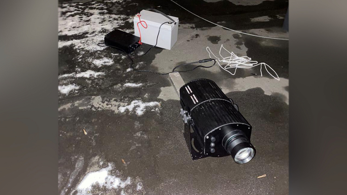 Прибывшие по указанному адресу полицейские при осмотре места происшествия обнаружили на крыше соседнего дома проектор, посредством которого на стене многоэтажки и отображалось противоправное объявление.