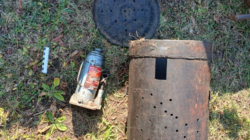 Прибыв по указанному адресу, полицейские нашли и изъяли сухую растительную массу с характерным запахом марихуаны, расфасованную по 50 мешкам, канистры, кастрюлю и бидон с гашишным маслом, масса которого, согласно проведенному исследованию, составила свыше 3 килограммов.