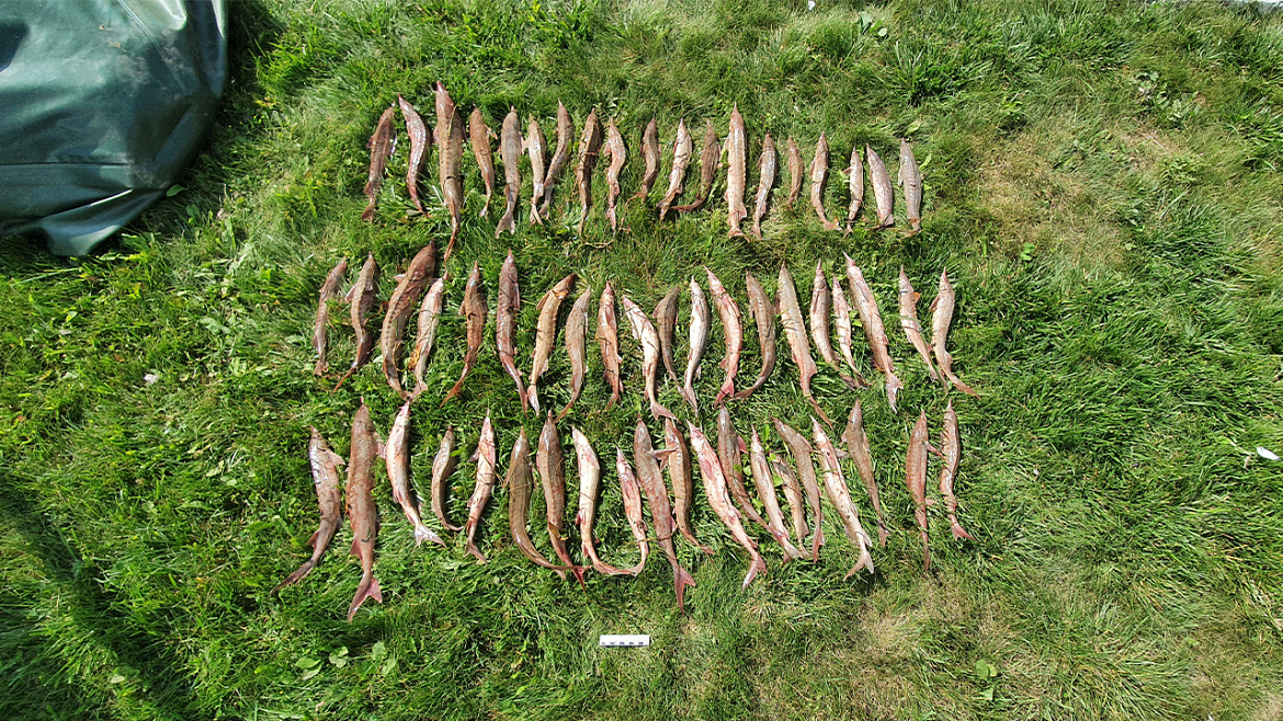 Для установки снасти злоумышленник использовал резиновую лодку. Увидев сотрудников полиции, он попытался скрыться, но был задержан. Осмотрев лодку, правоохранители обнаружили 59 стерлядей.