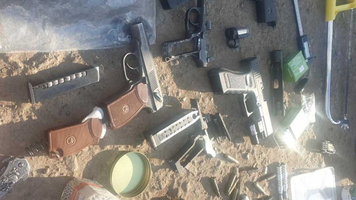 Также в транспортном средстве задержанного были изъяты автомат, пистолеты, патроны, гильзы и учебная граната. Согласно исследованию, всё обнаруженное оружие является охолощённым.
