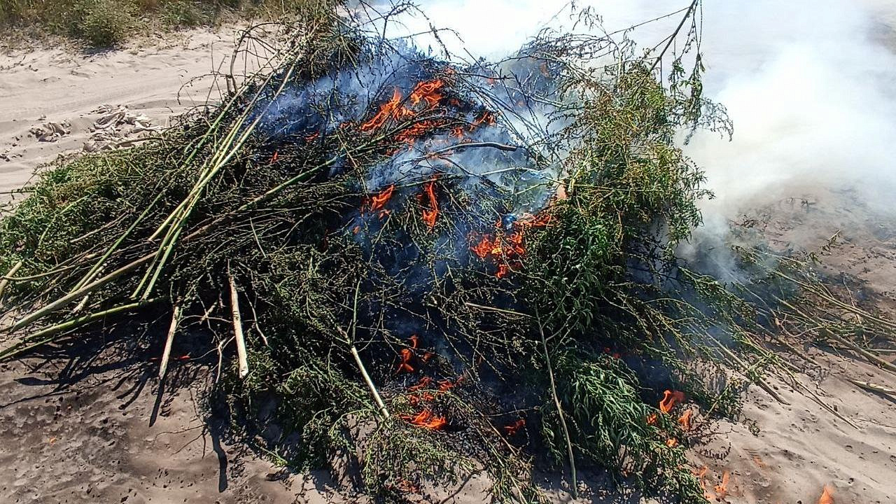 Сотрудники полиции совместно с коллегами из Росгвардии выявили на территории с. Великие Копани Алешкинского района Херсонской области очаг стихийного произрастания конопли.