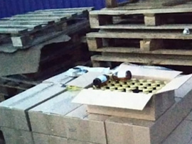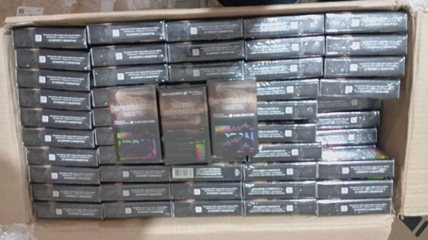 В результате обыска складского помещения подозреваемого правоохранители изъяли более пяти тысяч немаркированных пачек сигарет и около десяти тысяч литров спиртных напитков сомнительного происхождения.
