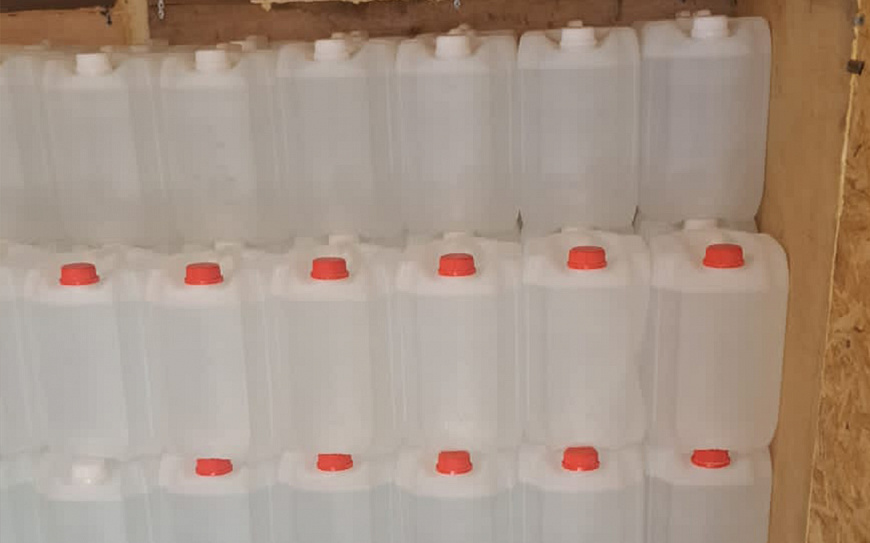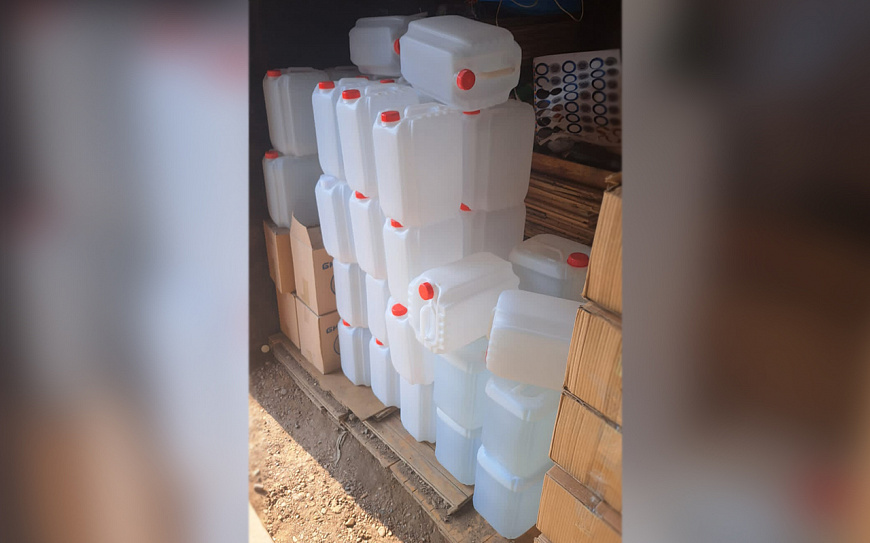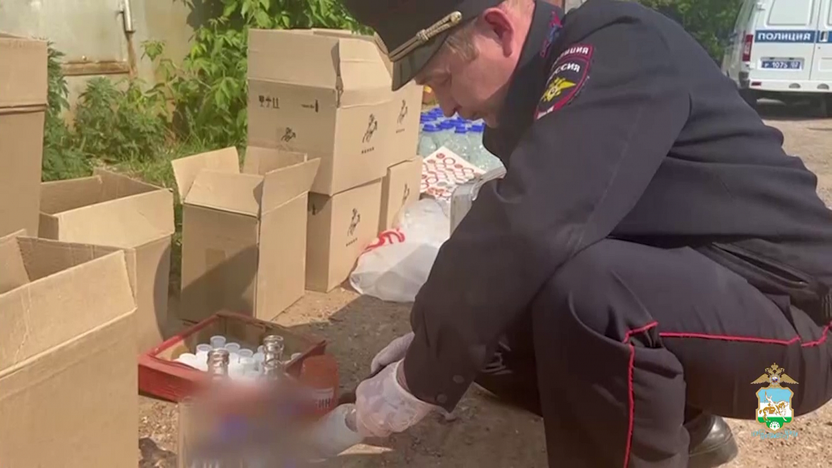 При проведении обысковых мероприятий оперативники изъяли из помещения ёмкости со спиртосодержащей жидкостью без акцизов общим объёмом около трёх тысяч литров, а также подготовленные для сбыта немаркированные 125 бутылок с сомнительным горячительным объёмом по 0,5 литра, на которых имелись этикетки известных производителей водки. Кроме того, были изъяты приспособления, использовавшиеся для розлива контрафакта, а также стеклянная тара, крышки и различные наклейки.