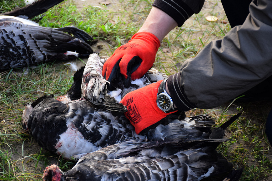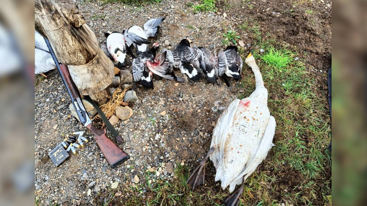 При осмотре места происшествия сотрудники полиции обнаружили и изъяли две единицы легального огнестрельного оружия, патроны, девять тушек белощёкой казарки и одну тушу лебедя-кликуна, отстрел которого категорически запрещён.