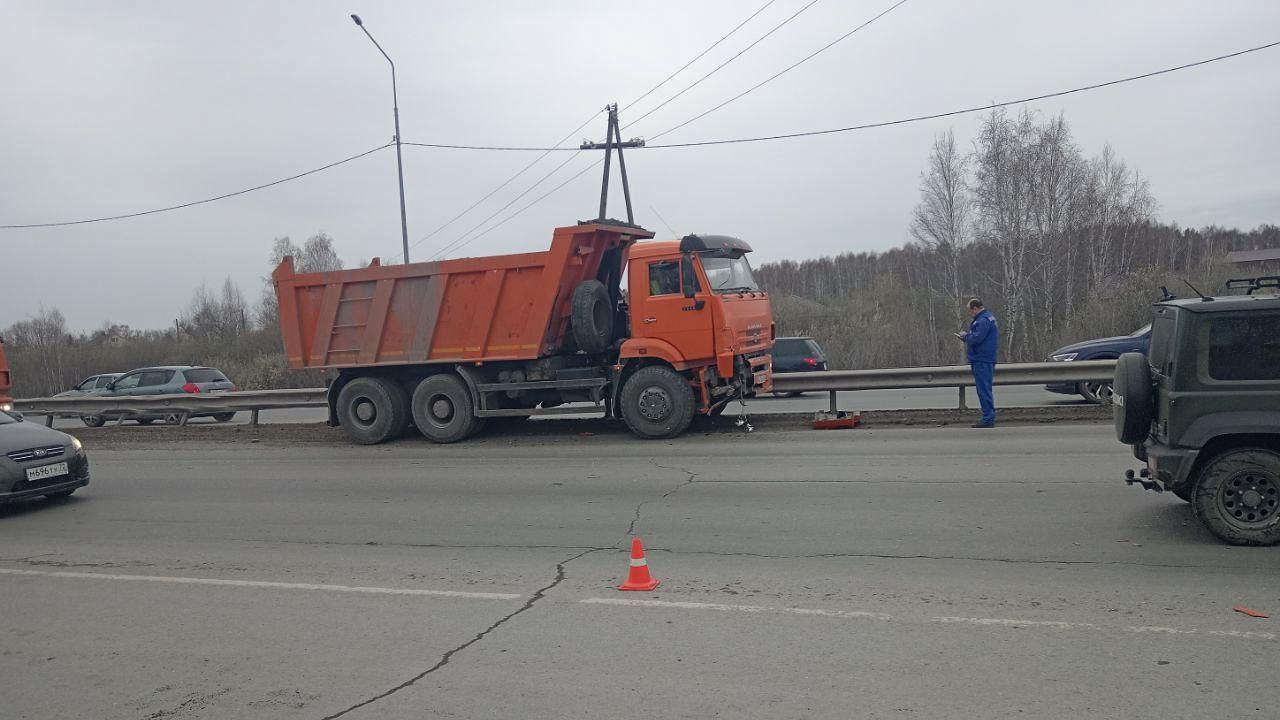 Полиция работает на месте ДТП под Тюменью, где КамАЗ столкнулся с автомобилем скорой медицинской помощи