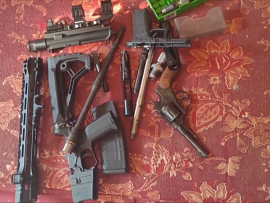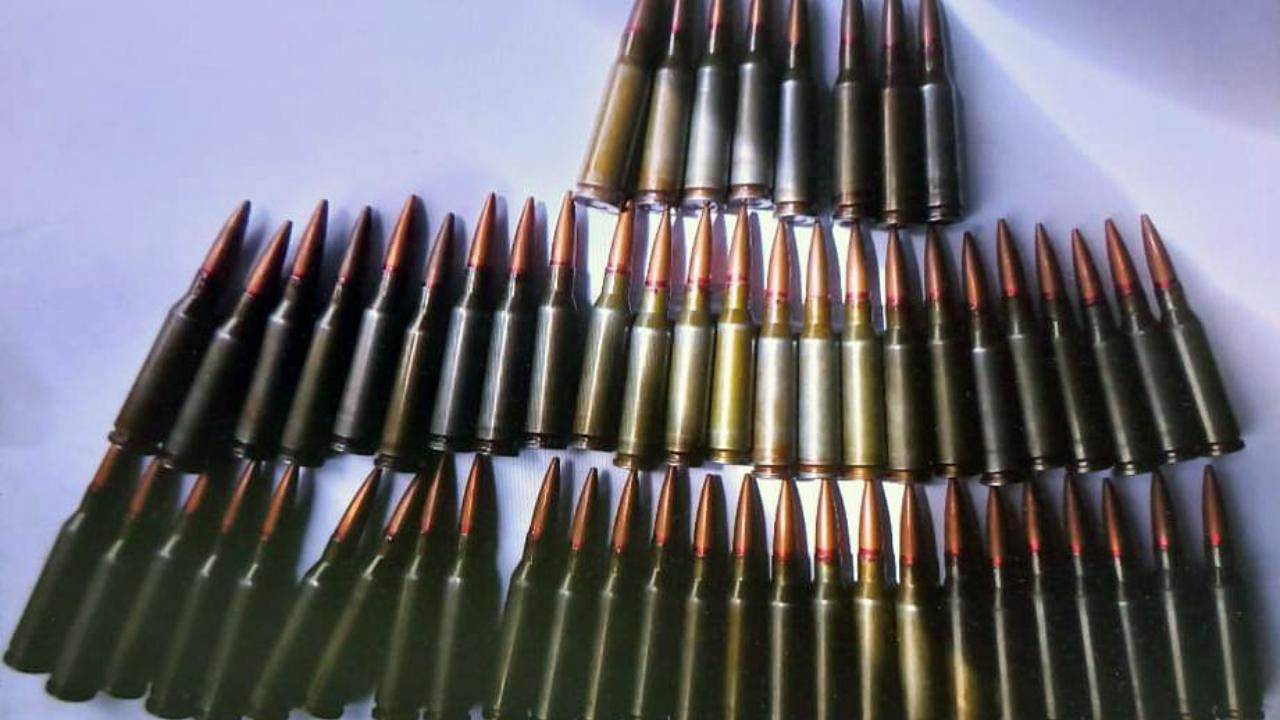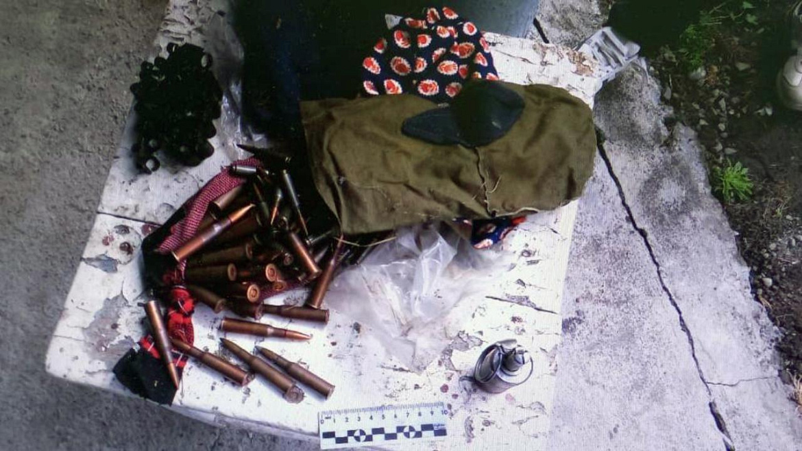 На место прибыли сотрудники следственно-оперативной группы, которые изъяли 100 патронов и самодельное взрывное устройство, изготовленное по типу ручных осколочных гранат.