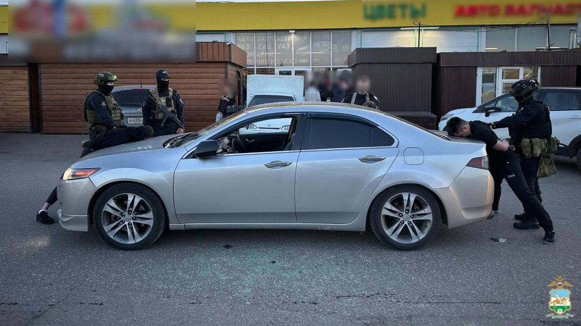 При силовой поддержке бойцов Росгвардии оперативники задержали сообщников на парковке торгового центра, расположенного в селе Булгаково.
