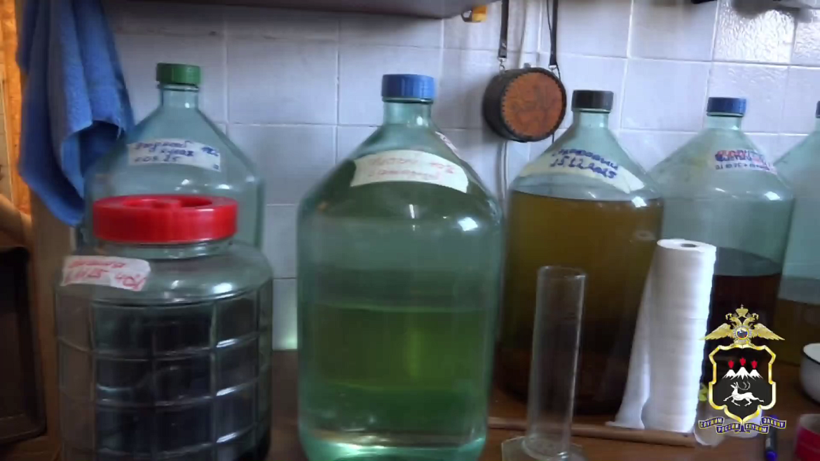 Сотрудники Управления экономической безопасности и противодействия коррупции УМВД России по Камчатскому краю в результате проведённых оперативно-розыскных мероприятий выявили и при силовой поддержке бойцов Росгвардии пресекли деятельность организованной группы, которая на протяжении почти шести лет занималась производством, хранением и розничной продажей крепкой алкогольной продукции без соответствующей лицензии.