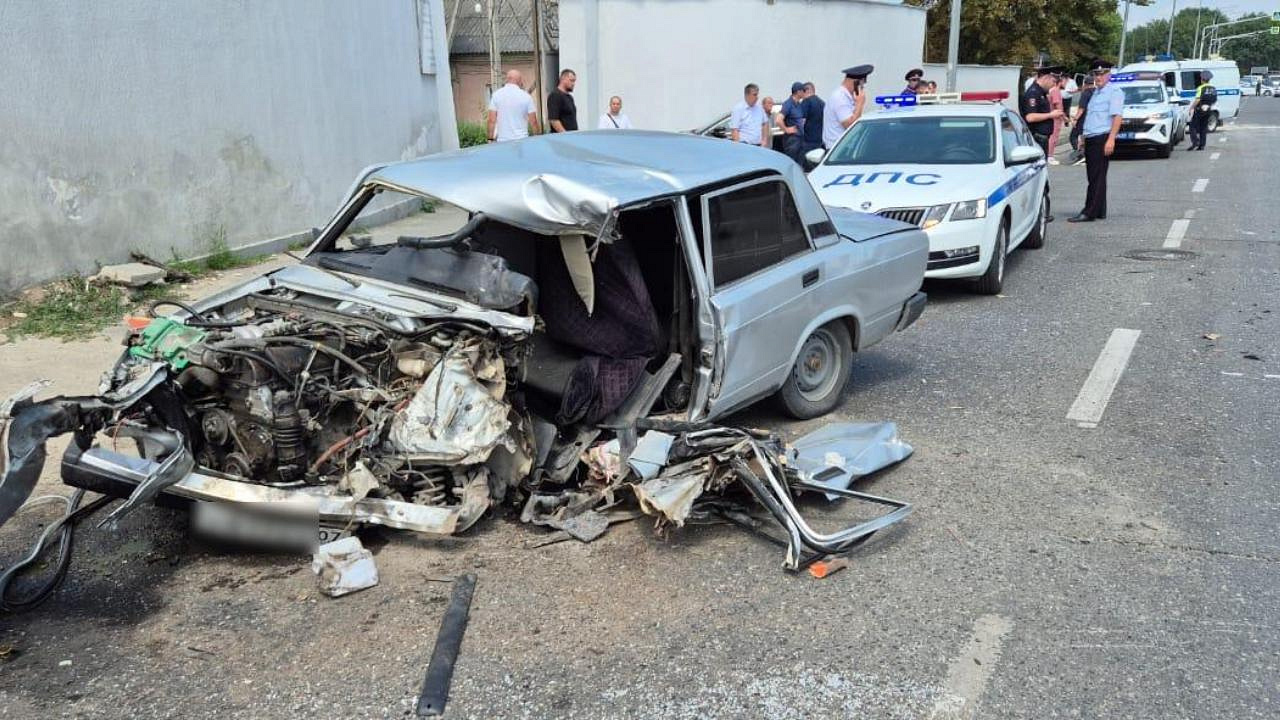 По предварительным данным, столкнулись встречные автомобили ВАЗ-2107 под управлением 48-летнего жителя г. Баксана и КамАЗ, за рулём которого находился 51-летний житель села Исламей. После чего большегруз съехал с проезжей части и протаранил ограждение территории, где расположено здание Северо-Кавказского научно-исследовательского института горного и предгорного садоводства.