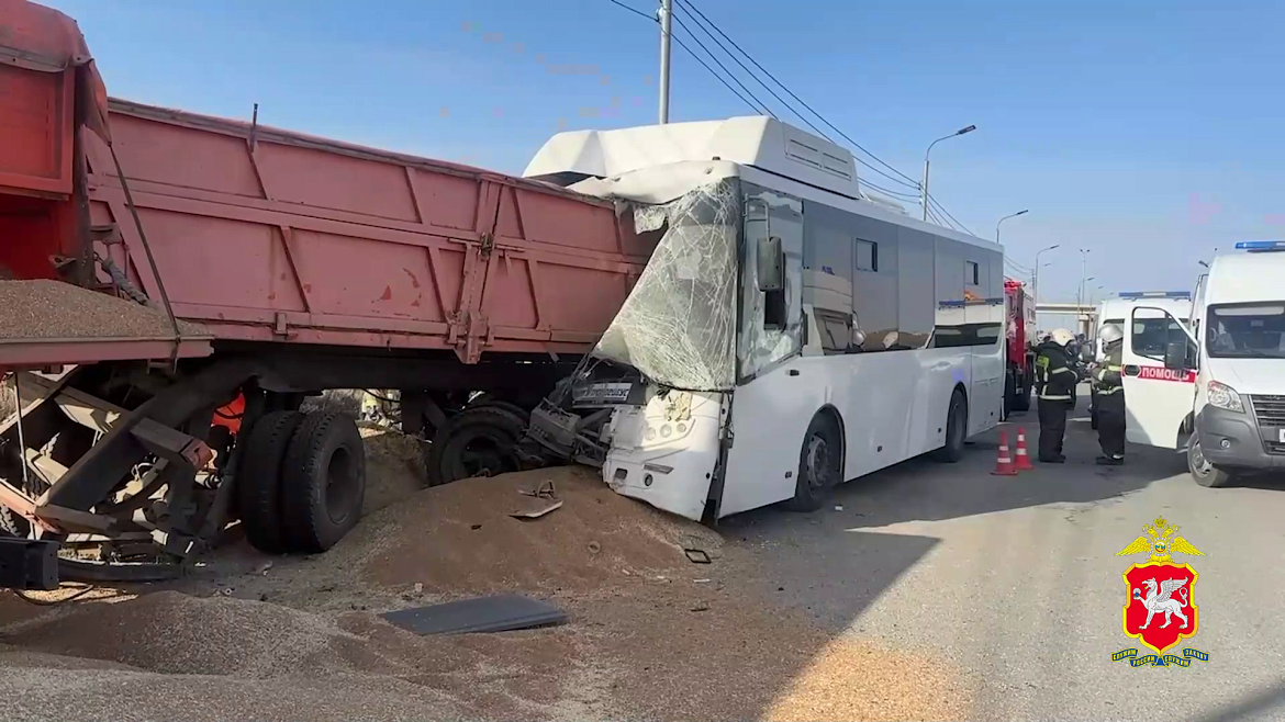 Полиция выясняет причины столкновения рейсового автобуса и грузовика в Симферопольском районе Крыма