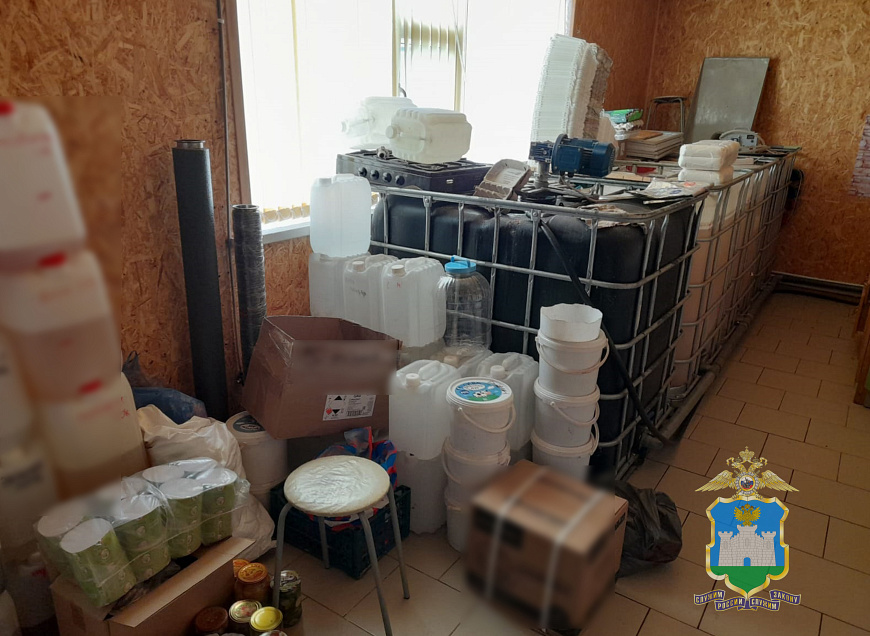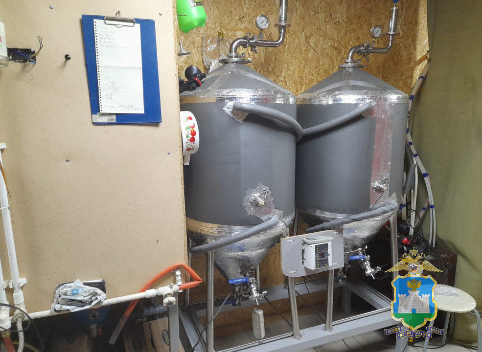 Из складского помещения полицейские изъяли множество стеклянных банок и пластиковых ёмкостей со спиртосодержащими жидкостями крепостью от 9 до 40 процентов и общим объёмом свыше 6,5 тысячи литров, оборудование для изготовления контрафактного алкоголя и около 200 литров этилового спирта.